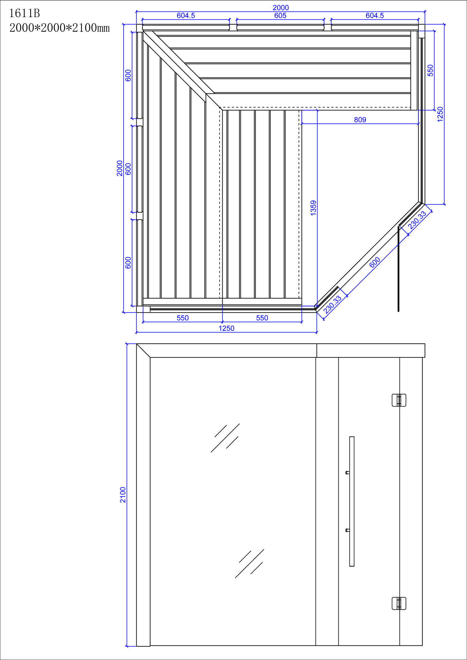 - 2000mm x 2000mm x 2100mm (Länge x Breite x Höhe)